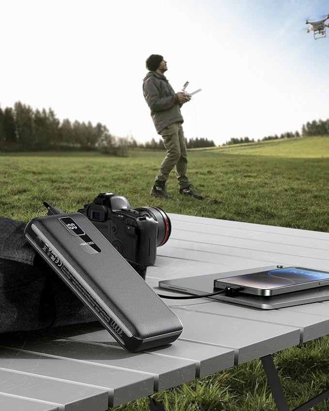 - [Universal compatibility] Comes with a iOS, USB-C, and USB-Micro cables, this portable charger works seamlessly with a wide range of smart devices, including iPhone 16/15/14/13 series, XR, XS Max, Samsung Galaxy S24/S23/S22/S21, Galaxy Z Flip/Z Fold, Galaxy A51/52/53, Google Pixel series, and many more smartphones and USB devices.Equipped with a sleek LED digital display that shows the battery level, even accurate to 1%.