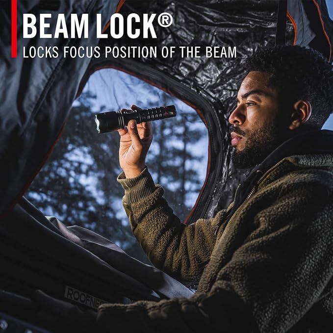 - FOCUSING BEAM with SLIDE FOCUS: Seamlessly switch between flood and spot beams with beam lock to secure your preferred setting.