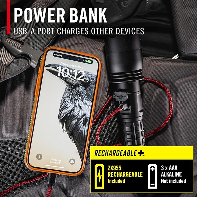 - POWER BANK FUNCTION: Features a 5,000mAh battery to power the flashlight and charge your devices.
