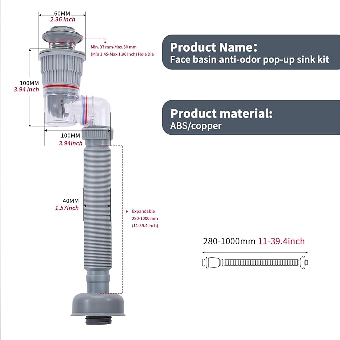 - - Easily upgrade your washbasin with our high-quality drain kit, including a convenient pop-up Drain Fitting for hassle-free use.
