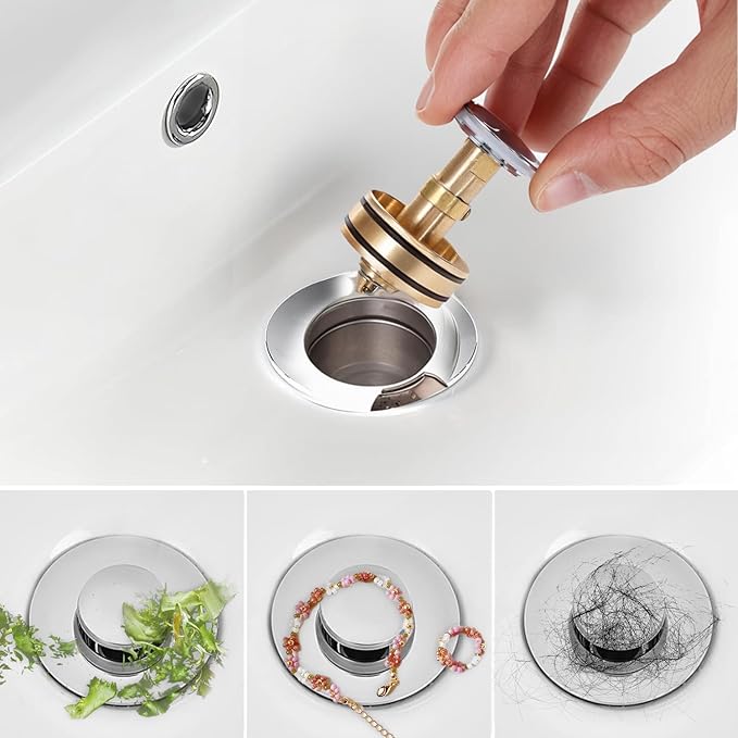 Bathroom Sink Pop-Up Drain Kit, Fits for 1-1/4'' & 1-1/2'' Drain Hole, Universal Use with or Without Overflow, Tool-Free Installation, with Anti-Clogging, Anti-Odor, Anti-Insect, Space-Saving Design