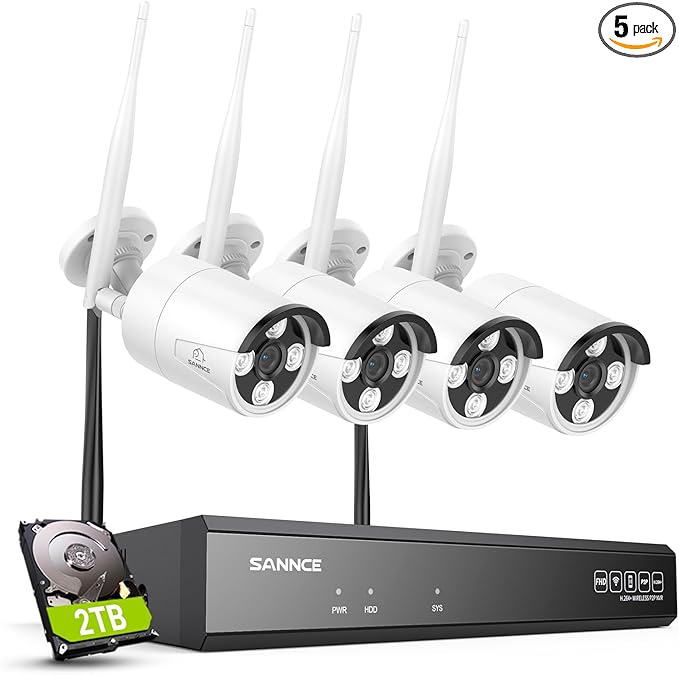 SANNCE 16CH 8MP NVR Wireless Security Camera System with 4 * 8MP IP66 Waterproof Surveillance IP Cameras, 2TB HDD Storage, Dual-Band WiFi, H.264+ Video Coding, Night Vision
