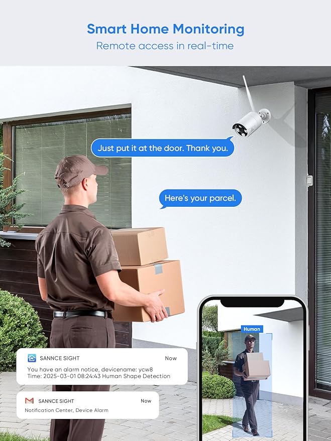 - 【16CH HD 8MP Wireless Security Camera System with 2TB HDD】Used in home, office and supermarket, SANNCE security system provides crystal-clear 8MP image preview, recording and playback. Spport human motion detection and two-way talk, further increase security perception.