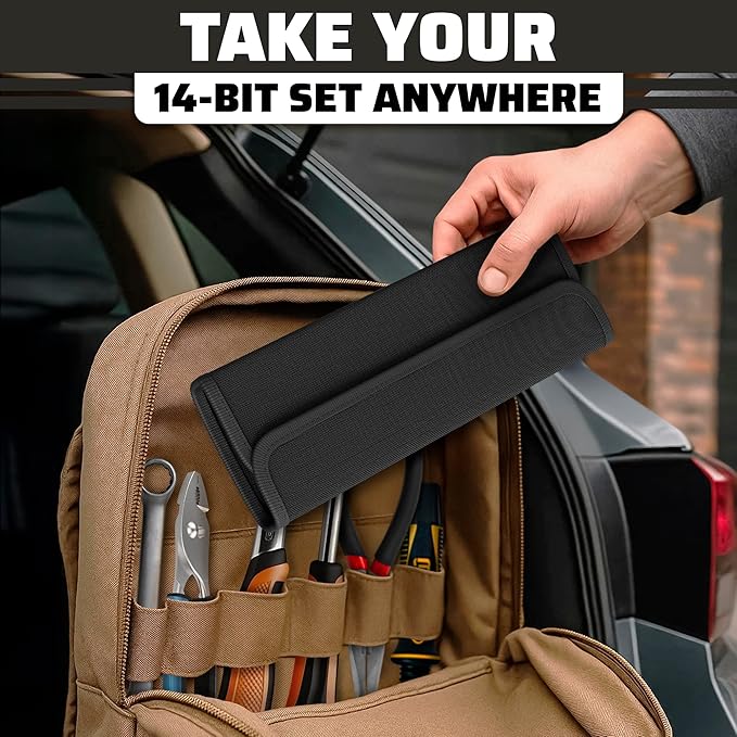 14 Tips Multi Bit Screw Driver Kit - Screwdriver Set for Various Uses, Versatile Head Types (Crosshead, Slotted, 6-Point, Square, Hexagonal), Strong Magnetic Tips and Insulated Cover, Convenient Case