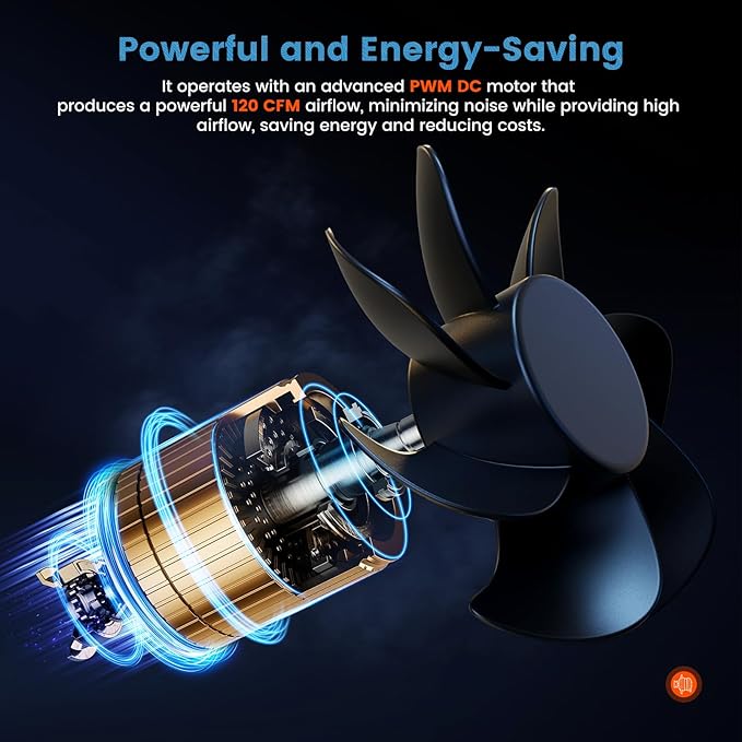 - 【Energy Efficient】Our vent booster fan is more energy efficient than traditional air conditioning and refrigeration units. Equipped with a premium PWM DC motor and a custom 7-blade fan, this fan delivers up to 120CFM of airflow. It rely on airflow to improve indoor temperature and circulation, maximizing the heating or cooling effects of your HVAC system with minimal energy. The advanced design optimizes airflow, increasing the efficiency of your HVAC system and helping you save on energy costs.
