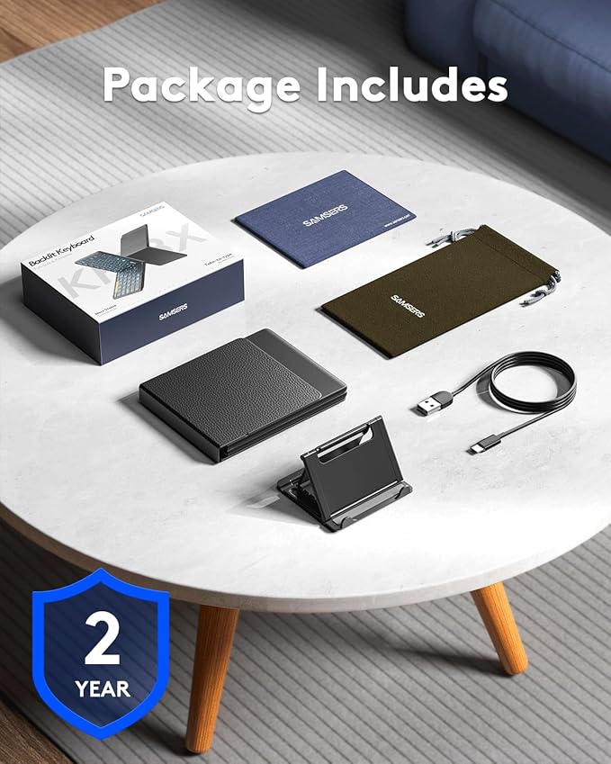 - 【Small Size & Big Convenience 】Just 9.9 ounces, the Samsers Portable Keyboard unfolds to the same size (11”x 4.8”) as a laptop keyboard. But folds up to palm size to fit into pocket / bag, taking up less space in your luggage! Package also includes a travel velvet pouch , phone holder and charge cable, organizes all your essentials(accessory) neatly.