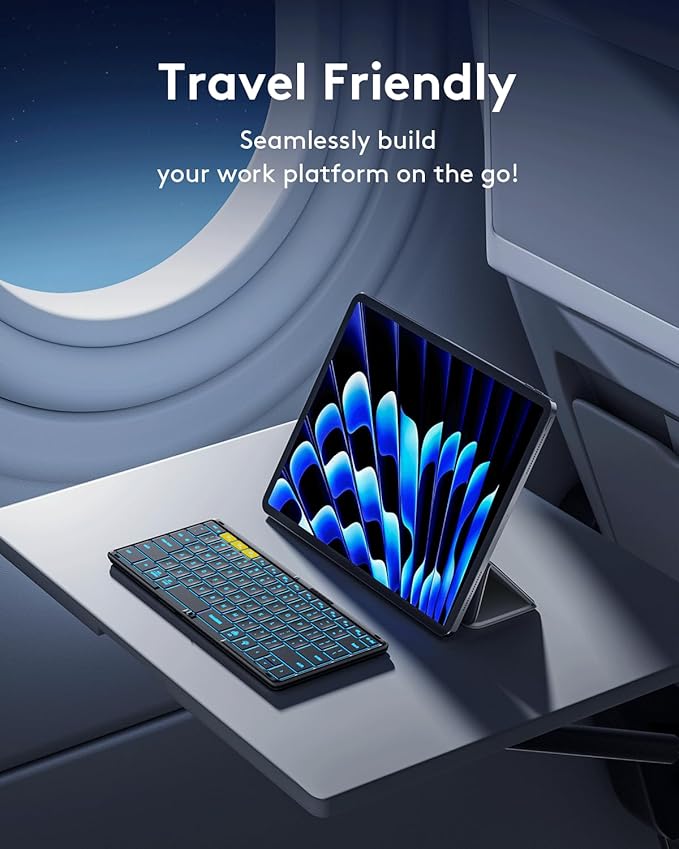 - 【Connect up to 3 Devices】 Pair up to 3 devices simultaneously with only 1 click to switch between them(such as ipad, smartphone, tablet or laptop). Large, well-spaced keys give your hands plenty of room to type comfortably. X-shaped scissor keys give you that perfect bounce. No lagging within 33 feet of operation distance. Provide you a seamless typing experience that will keep you focused on your work!