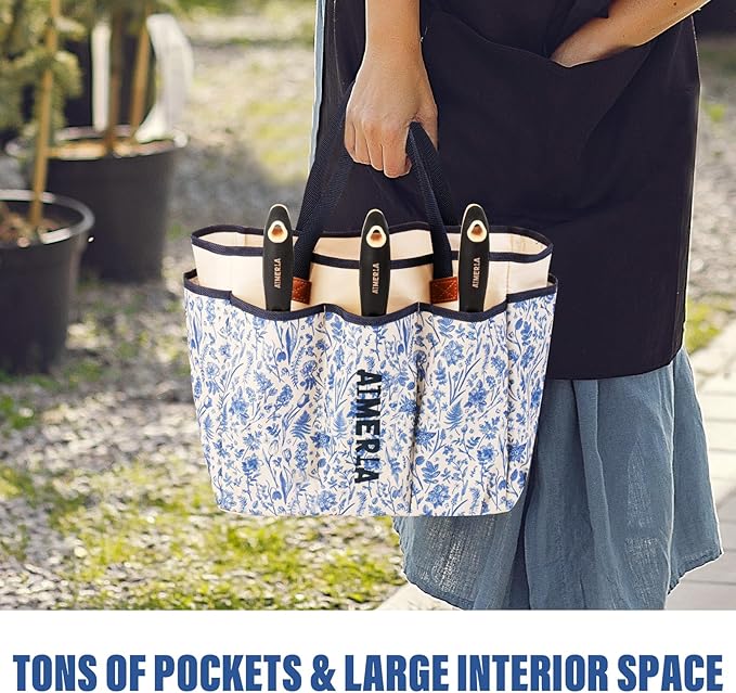 - THE BAG THAT LAUGHS AT CHAOS! - 8 pockets, tough fabric, leather handles—this bag cradles tools like royalty. No more “Where’s my trowel?!” meltdowns. Organized bliss, dirt included.