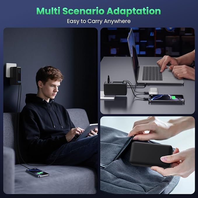 - 【GaN IV Tech for Compact Power】 Built-in advanced Gallium Nitride (GaN IV) chip reduces size and weight by 50% compared to traditional chargers,while enhancing charging efficiency, minimizing heat generation, and ensuring stable charging.