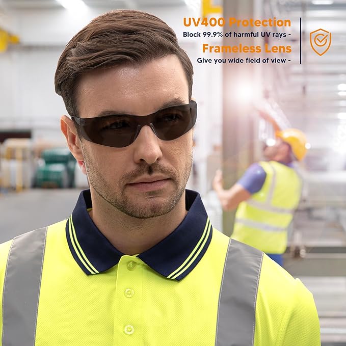 - 【DARK SAFETY GLASSES】The dark lenses block 99.9% of harmful UV radiation and protect your eyes from glare in bright sunny days. One can even use it as shaded sunglasses while on vacation. Although they are cheaper than regular sunglasses, they are by no means inferior.