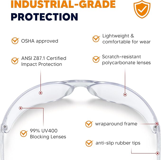 24 Pack Clear Safety Glasses, Protective Eyewear UV Protection & ANSI Z87.1, Safety Goggles Scratch & Impact Resistant Eye Protection for Men & Women - Ideal for Construction, Shooting, Lab Work