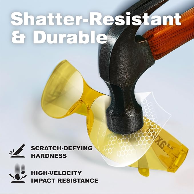 • Wide-Angle, Scratch-Resistant Vision: Clear, distortion-free polycarbonate lenses feature an anti-scratch coating, ensuring long-lasting clarity and reliable visibility during any task or shift.