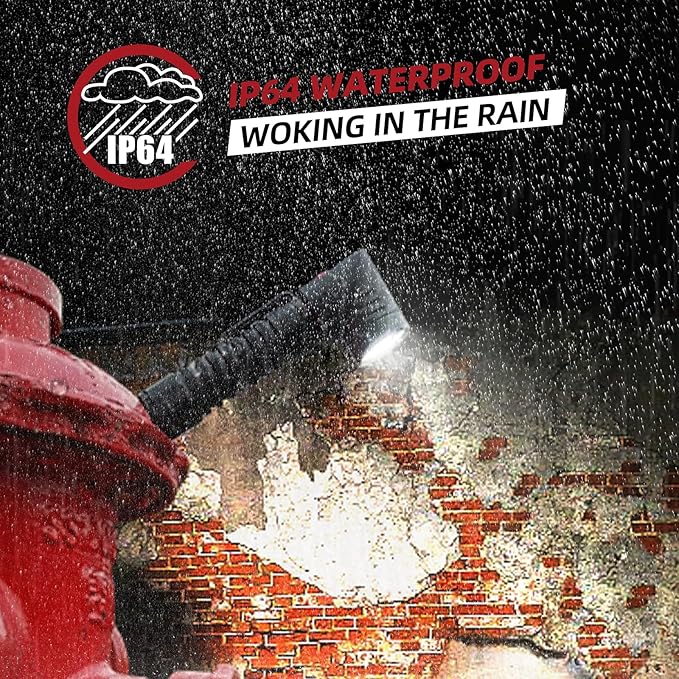 - [22-Hour Battle-Ready Endurance] Rechargeable 4000mAh powers Max 22hr runtime–enough to survive 3-night shifts with just a Flashlight,IP64 water resistant and aircraft aluminum tough body withstand jobsite drops, oil spills, and monsoon rains