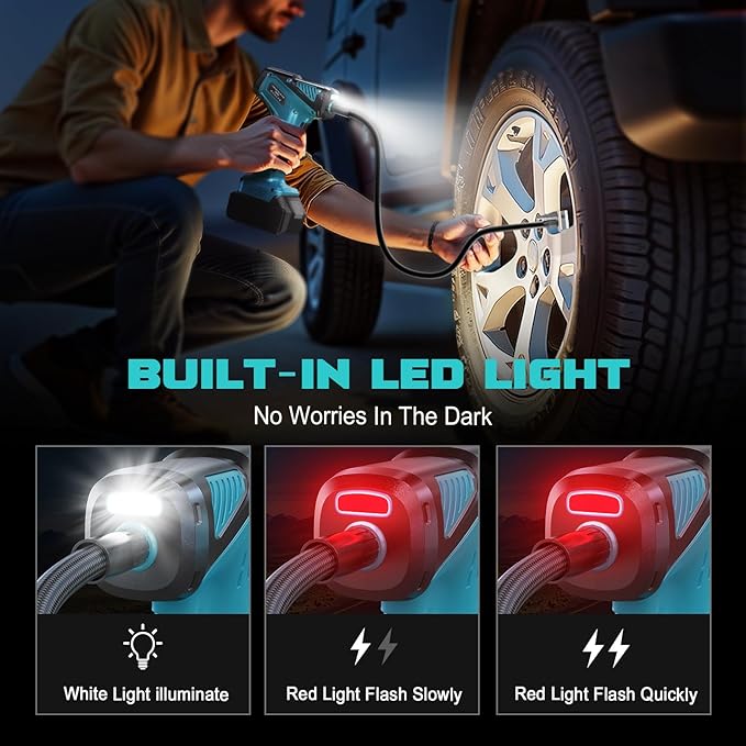 - 18V CORDLESS CONVENIENT CHARGING: This portable tire inflator operates as a tool-only unit, compatible with Makita 18v lithium batteries (sold separately), model BL1830B BL1860B BL1820B BL1840B BL1850B and more. No power outlet required – perfect for inflation needs at home, on the road, or during outdoor adventures.