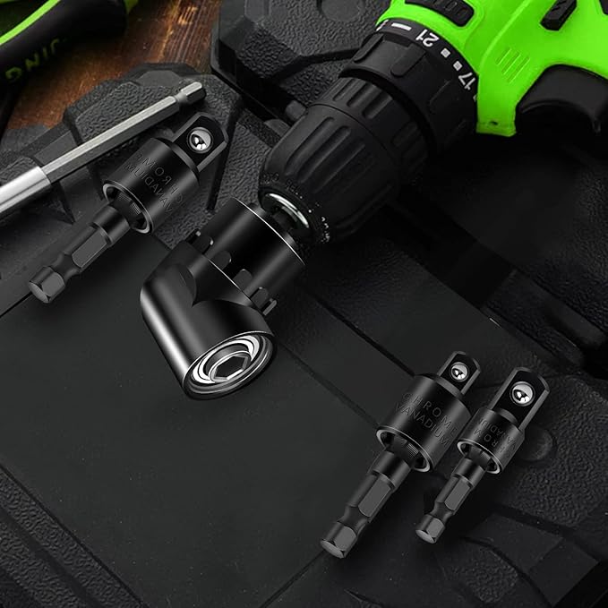 - ☆High Quality:105°Angle Extension Made of Chrome Vanadium steel, high hardness angle drill bit holder, anti rust, durable die cast body with 3 ball bearings for long life [Strong Magnet] Built in strong magnet for good holding power, this right angle drill attachment is easy to use and avoid falling off [Easy To Use] 105 degree angle extension, 360° parallel adjustment, perfect handy tool for hard-to-reach corners and tight spaces, max torque 15n/m