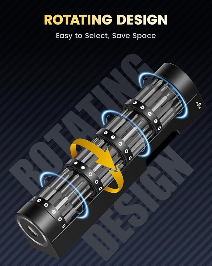 - 🔩🔩Advanced appearance design: The portable screwdriver set adopts a modern innovative design, combining square and round shapes, exuding a high-quality and exquisite beauty. Electric screwdriver for PC not only provide precision, efficiency and beautiful appearance, but can also turn core extraction screws, and the "click" turning sound makes people more happy to repair.