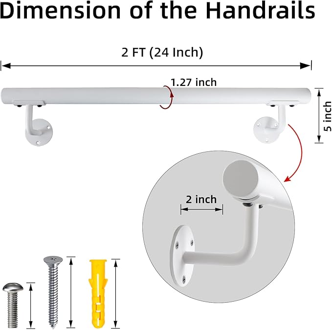 - 【High Strength Steel Pipe Handrail】: These white stair rails, crafted from high grade steel pipe with 1.5mm wall thickness and support with solid sturdy brackets, 2ft length is great to install on stairway, upgrade the safety of your families: the pregnant, children, elderly and disabled that who needs the helper.