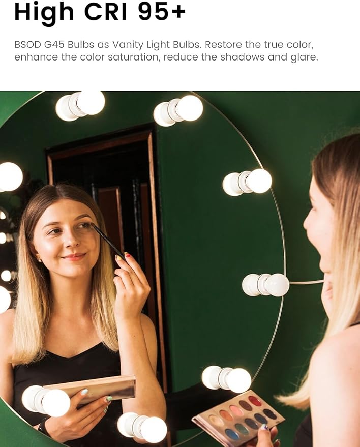 - BSOD G45 Daylight LED Bulbs: CRI>95, ensuring that colors are vividly and accurately represented. E26 base, 5W bulb equivalent brightness 40W traditional bulb, making energy-efficient. The globe light bulb has a 360° beam angle. This freezer bulb can operate within temperatures from -7°F to 149°F, making it suitable for Refrigerators, indoor, outdoor. IP44 Waterproof, the led light bulb can resist splashing water,such as Refrigerator, vanity, bathrooms, kitchens, or outdoors porches string lights. Moreover, the daylight led bulb offers a full-spectrum light, mimicking 6000K sunlight to create a comfortable and healthy lighting atmosphere. And No-Flicker, No-Heat Bulb