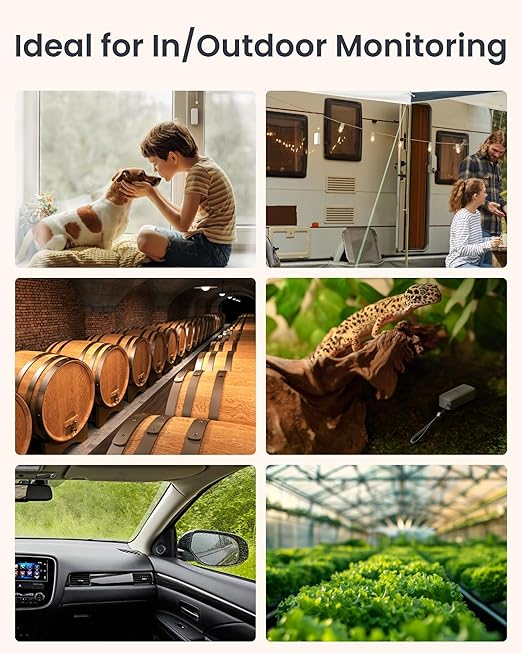 - IP65 Dustproof & Waterproof: This wifi thermometer is built with IP65 protection, making it dustproof and waterproof—ideal for rainy days or harsh environments. Easily connect up to 3 sensors via Wi-Fi for seamless monitoring. Lightweight and portable, it’s perfect for kitchens, bathrooms, greenhouses, refrigerators, guitar cases, humidors, attics, basements, and more.