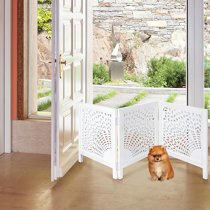 - Versatile Pet Gate: This foldable,freestanding dog gate offers flexible placement anywhere in your home. Perfect as a wooden dog gate for doorways, hallways, or stairs to keep pets safe and secure without installation.