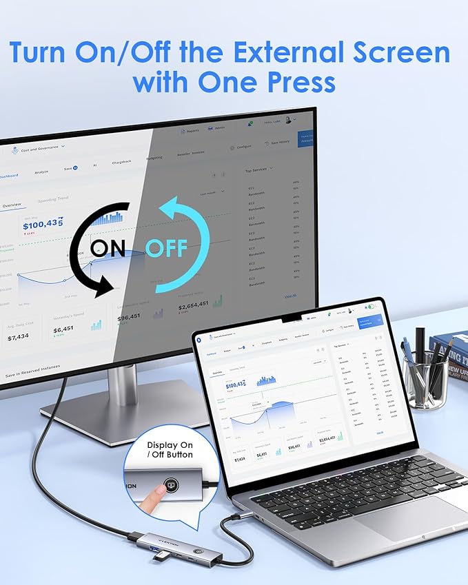 - 4K@60Hz HDMI with One-Click Screen Privacy: The USB C hub features a One-Click Display Control for Privacy to instantly turn off the HDMI-connected screen, offering quick privacy protection during office meetings, gaming sessions, or personal use. Stay in control of your display anytime. 𝐍𝐨𝐭𝐞: 𝐔𝐒𝐁-𝐂 𝐝𝐞𝐯𝐢𝐜𝐞𝐬 𝐬𝐡𝐨𝐮𝐥𝐝 𝐬𝐮𝐩𝐩𝐨𝐫𝐭 𝐔𝐒𝐁 𝐓𝐲𝐩𝐞-𝐂 𝐃𝐏 𝐀𝐥𝐭 𝐌𝐨𝐝𝐞(𝐕𝐢𝐝𝐞𝐨 𝐭𝐫𝐚𝐧𝐬𝐦𝐢𝐬𝐬𝐢𝐨𝐧 𝐟𝐮𝐧𝐜𝐭𝐢𝐨𝐧)
