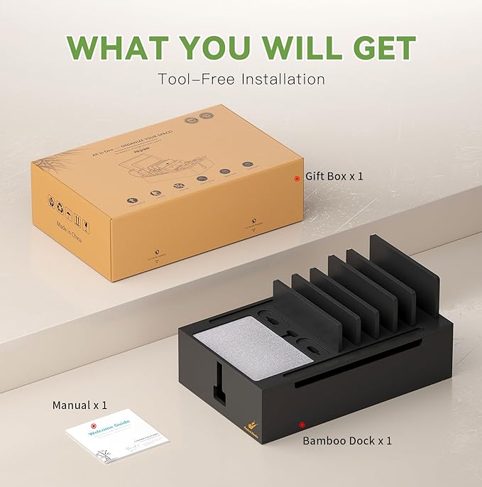 - Included Components : Bamboo Charging Station