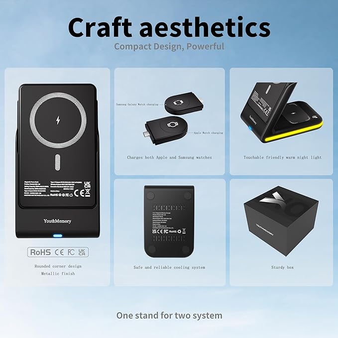 - 【YouthMemory 5-in-1 Charger Stand Customer Friendly Features】It is equipped with a non-slip surface and case-friendly. hen you use YouthMenory Charging Station, Samsung Phones need magnet cases. Our Charging stand helps to keep devices organized and charged while enhancing any room or office with its sleek appearance.