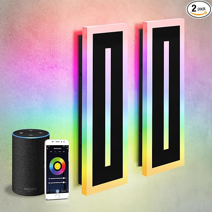 ASD LED 18" Long Wall Mount Light Fixture, Outdoor & Indoor Linear Sconce | RGBW, Smart, Waterproof, Anti-Rust, ETL Listed | 20W 950LM 2700-6500K 100-277V | Exterior Porch Lighting | Black, 2 Pack