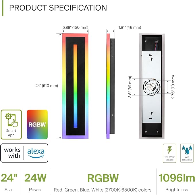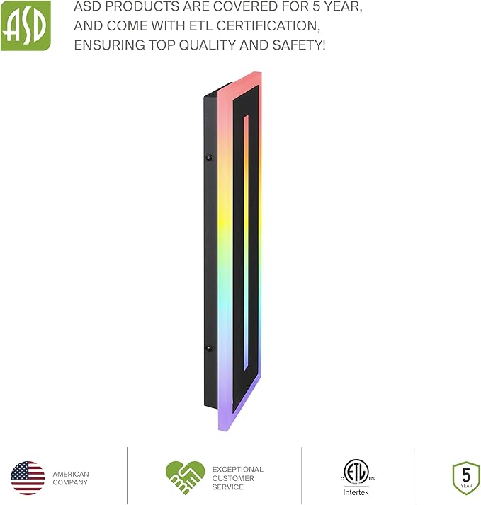 ASD LED 24" Long Wall Mount Light Fixture, Outdoor & Indoor Linear Sconce | RGBW, Smart, Waterproof, Anti-Rust, ETL Listed | 24W 1100LM 2700-6500K 100-277V | Exterior Porch Lighting | Black, 2 Pack