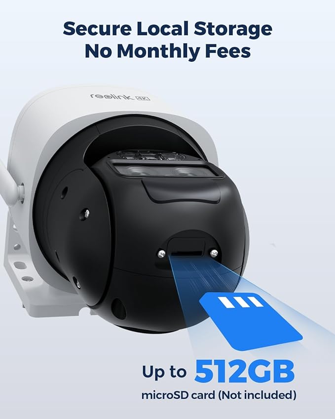 - VERSATILE STORAGE OPTIONS, NO SUBSCRIPTION: Store your recordings to a 512GB microSD card for secure local storage. Expand up to a massive 16TB with Reolink Home Hub or Home Hub Pro, and effortlessly integrate with RTSP, NAS, and Home Assistant. (microSD card & Home Hub/Home Hub Pro are sold separately)