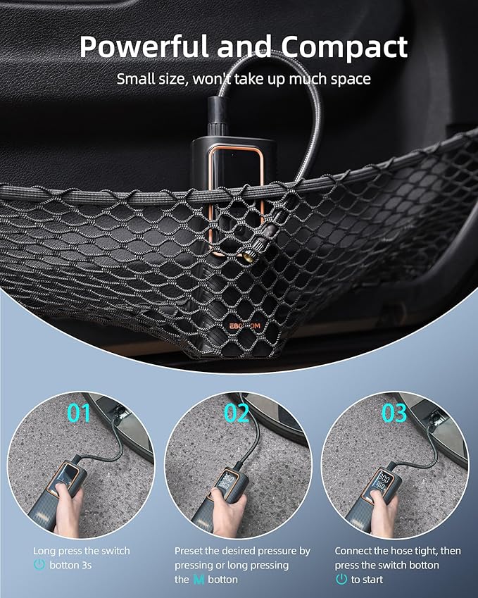 - MULTI-COMPATIBLE: The air pump has 5 preset inflation modes + 4 pressure units. Not only for car and bicycle tires—it's a versatile tool that can handle motorcycle, basketball, and even for small swim ring and air mettress inflation needs