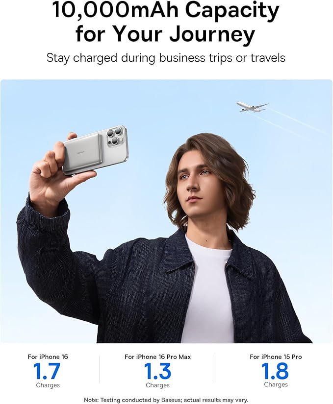 - 🔋【10,000mAh, Full of Power All Day】With a large 10,000mAh capacity, it keeps your devices fully charged all day long. This qi2 charger can charge your iPhone 16 pro to 33% in just 30 minutes via the 20W USB-C port, provides extra power when you need it most, eliminating the anxiety of low battery. Reminder: It’s the thinnest and lightest Qi2 10,000mAh power bank on the market, you never have to worry about running out of battery again.