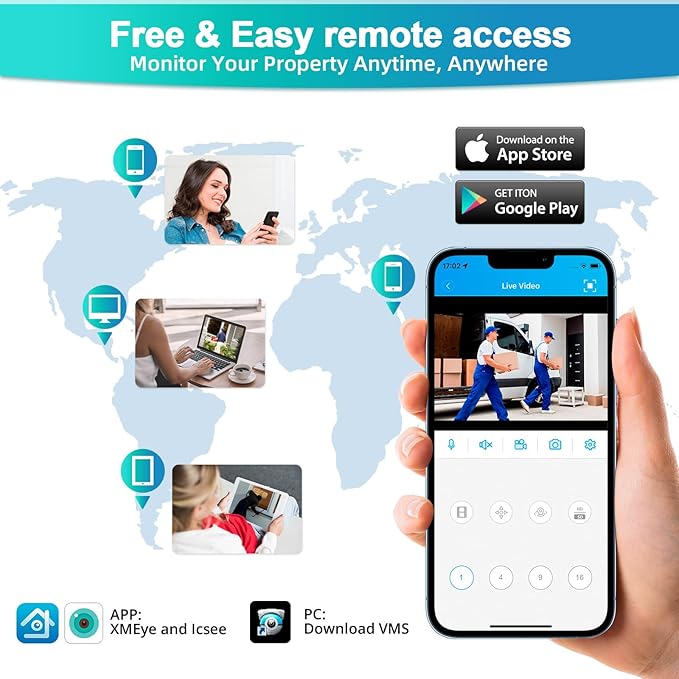- 【Convenient Operation Experience】You can quickly complete various settings, such as video mode adjustment, channel management, playback search, and more. In addition, our 24/7 recording security camera also supports remote access function, you can view real-time surveillance pictures and video playback through mobile phones, computers and other devices in any place with a network connection, without worrying about geographical restrictions, and will not miss any wonderful moments.