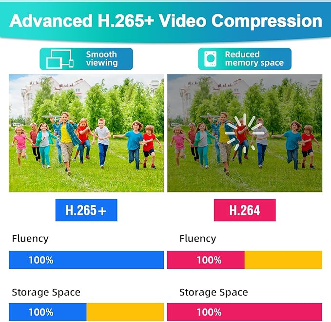 - 【H.265+Efficient Video Compression】 Advanced H.265+ of this dvr for security camera can further improve the compression ratio based on the H.265 standard.H.265+ encoded 16CH dvr recorders provide longer recording times and up to 80% storage savings compared to H.264 systems.This effectively saves storage resources, improves image quality, and provides an excellent and smooth browsing experience.