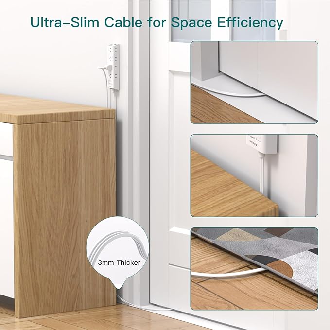 - 【Space Saving Flat Plug & 6Ft Extension Cord】- With only 0.35 inch ultra slim design, the flat plug power strip is much thinner than traditional plugs, which can close to the wall easily, and hide in the back of furniture, bed or refrigerator; 6ft extension cord is made of pure copper, which has better current carrying capacity (15A). The flexible power cord is not easy to deform, durable and more safety