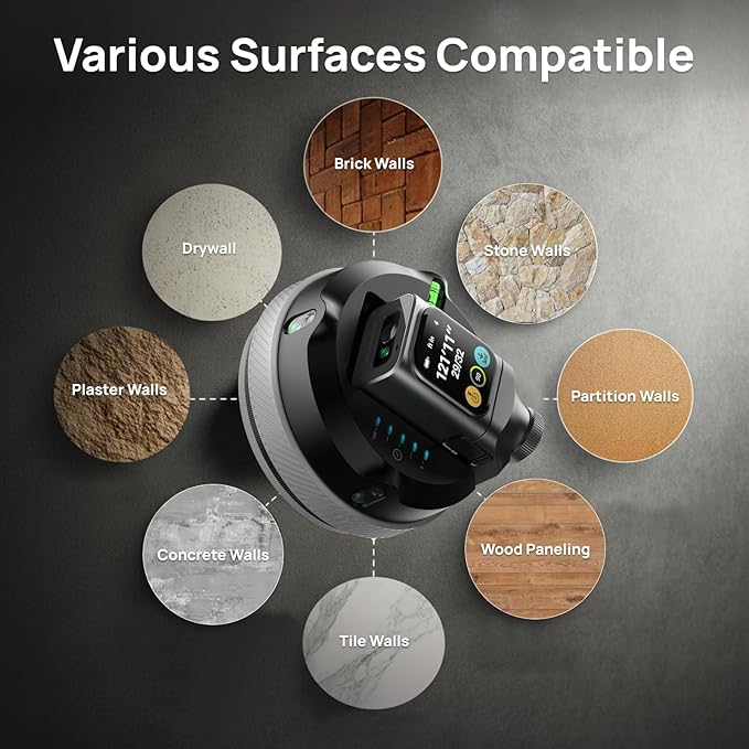 - 【55,000Pa Wall Suction Laser Level Tool】- No Need for Tripods, Free up your hands.Ideal for picture hanging, shelf installation, cabinet mounting, wallpaper alignment, lighting setup, and DIY projects, it ensures precise positioning for home improvement, renovations, and construction tasks.Also suitable for outdoor use, with laser visibility up to 5m/16ft under ideal lighting conditions