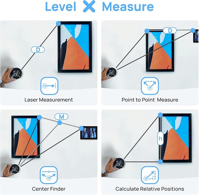 - 【P2P Laser Measure & Center Finder】-The M-Cube 02 Anti-Gravity features 360° Flexible Rotation with advanced Angle Detection and enables Point-to-Point Measurement and Center Finding, along with relative position calculation. For enhanced accuracy, pair it with CenterMate and TargetMate—the target board allows precise measurements anywhere, while CenterMate helps pinpoint key points easily