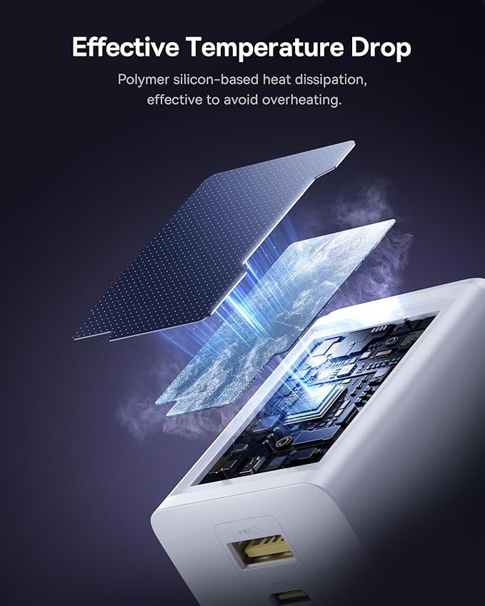 - Effective Temperature Drop: This compact wall charger adopts advanced high-polymer silicon material for superior heat dissipation and the Baseus Cooling technology (BCT) for real-time temperature monitoring. With this efficient thermal management, the 100W USB-C fast charger can stay cool all the time to ensure safe fast charging while extending the battery lifespan for your devices.