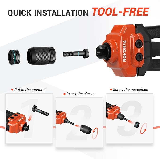- Easy Installation: Our rivet nut tool features a tool-free mandrel replacement design, simplifying operations and making it easy to use, enhancing efficiency and conveniency.