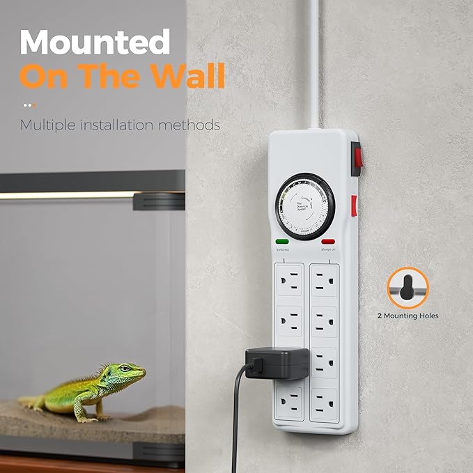 - Mountable and Stable: There are 2 mounting holes on the bottom of outlet timer indoor, timer plug extension outlet can be mounted on the wall or the side of the table, suitable for aquarium lighting, plant cultivation, outdoor light strings, etc