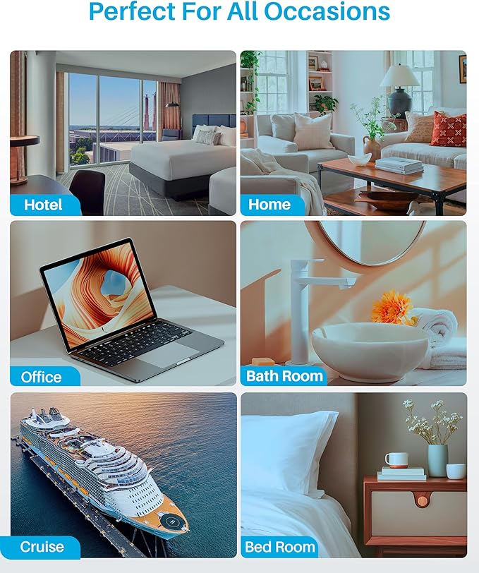 - 【Space-Saving & Travel-Friendly】 – This portable multi plug wall outlet is designed to fit 3 large plugs at once, measuring just 2.1×2.7×2.99 inches and weighing only 3.53 ounces. Its compact, lightweight USB plug adapter for wall outlet design makes it perfect for cruises, travel, hotels, home, office, or dorm rooms—easy to pack, carry, and use anywhere.