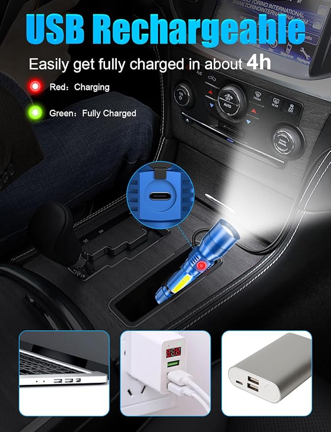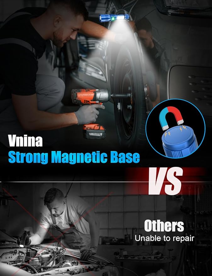 - ๐ฆ[Strong Magnet & COB Sidelight]: If you're struggling with repairing at night with a flashlight in one hand, Our magnet flashlights fit you more! Build with magnet can be attached to the surface of iron material to free your hands. Also, the COB side light has almost 180ยฐ wide beam and bright enough for repairing or working, pairing with the magnet is the perfect combination.