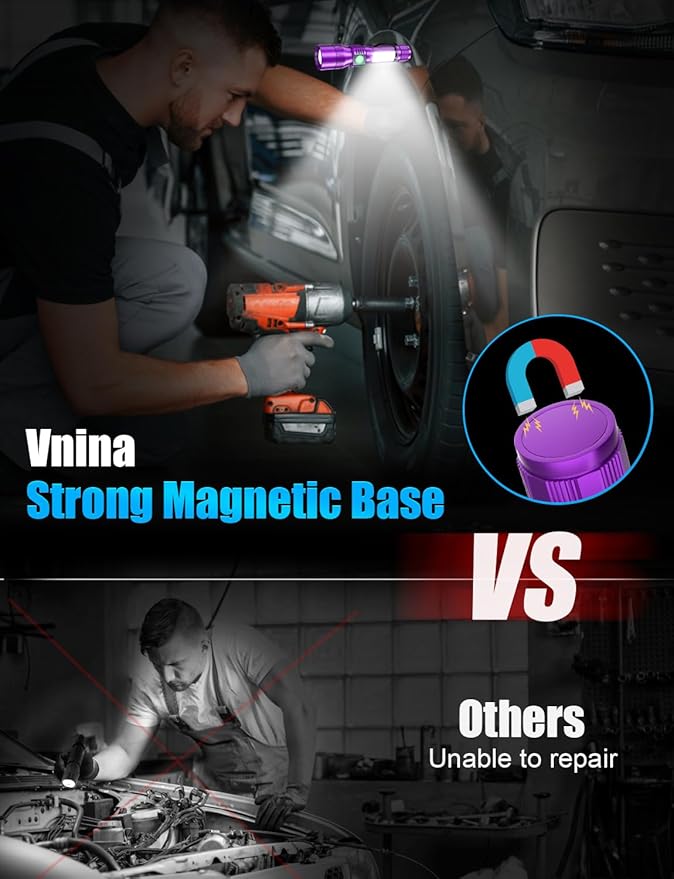 - ๐ฆ[Strong Magnet & COB Sidelight]: If you're struggling with repairing at night with a flashlight in one hand, Our magnet flashlights fit you more! Build with magnet can be attached to the surface of iron material to free your hands. Also, the COB side light has almost 180ยฐ wide beam and bright enough for repairing or working, pairing with the magnet is the perfect combination.