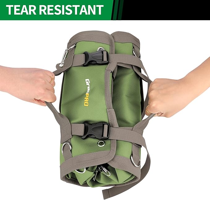 - Industrial-Strength Load & Weatherproof Defense-The reinforced straps and buckles withstand up to 25 lbs of tools, while the waterproof base protects gear from rain or spills.