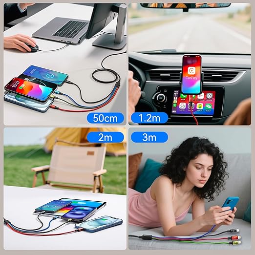 - 【Universal Compatibility】: Compatible with iPhone 17 Air/ 16 15 14 Plus/ 17 16 15 14 13 12 11 Pro Max/ 17 16 15 14 13 12 11 Pro/ 14 13 12 Mini/ SE/ 17 16 15 14 13 12 11/ XS / XS Max/ XR/ 8/ 8 Plus/ 7/ 7 Plus, Phone 6s/ 6s Plus/ 5/ 5s/ SE, iPads, Pad 4, Pad Air, Pad mini, Pod. USB type c connector supports to the Samsung Galaxy UItra/ S25+/ S25/ S24+/ S24/ S23/ S22+/ S22/ S21+/ S21/ S20+/ S20/ 210+/ S10/ S9+/ S9/ S8+/ S8, Note 9/ 10/ 20, Nexus 5X, Nexus 6P, LG V30 V20 G6 G5, Pixel/ Pixel 2 XL, HTC, ZUK Z1, Lumia 950, Lumia 950 XL, N1. Micro USB port for Samsung Galaxy S7/ S6/ S5 most Android phones, Kindle, tablets, Bluetooth headset, external batteries, PS 4 5 controllers and more.