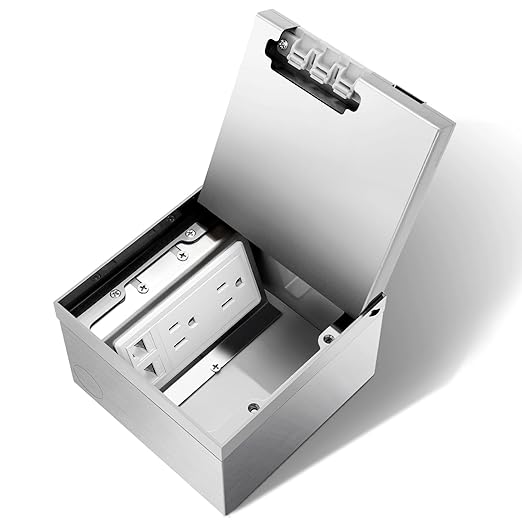- Product composition:Recessed stainless steel Floor Electrical Outlet Box,with Duplex 15A Tamper-Resistant Receptacle Outlet and 2*RJ45 Port