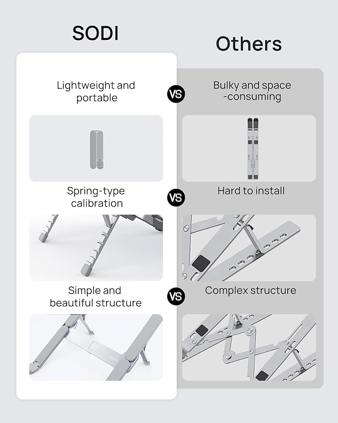SODI Ultra Compact Foldable Laptop Stand - Portable Laptop Holder for Desk & Travel Use, Ergonomic Aluminum Computer Holder with Adjustable Height for MacBook, Tablet 10-16" (Light Gray, Bi-Fold)