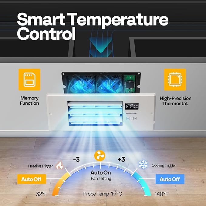 - ๐๐๐๐๐ ๐๐๐๐๐๐๐ ๐ ๐๐ ๐๐๐๐๐๐ ๐๐๐๐๐๐: The VIVOHOME Register Booster Fan is a quiet fan system designed to improve airflow from wall and floor HVAC vents; Equipped with a high-precision temperature sensor, the thermostat monitors room conditions in real time and automatically turn on and off based on your preset settings; Includes a memory function that recalls the last used temperature, fan speed, and louver angle after restarting, maintaining comfort while optimizing energy efficiency