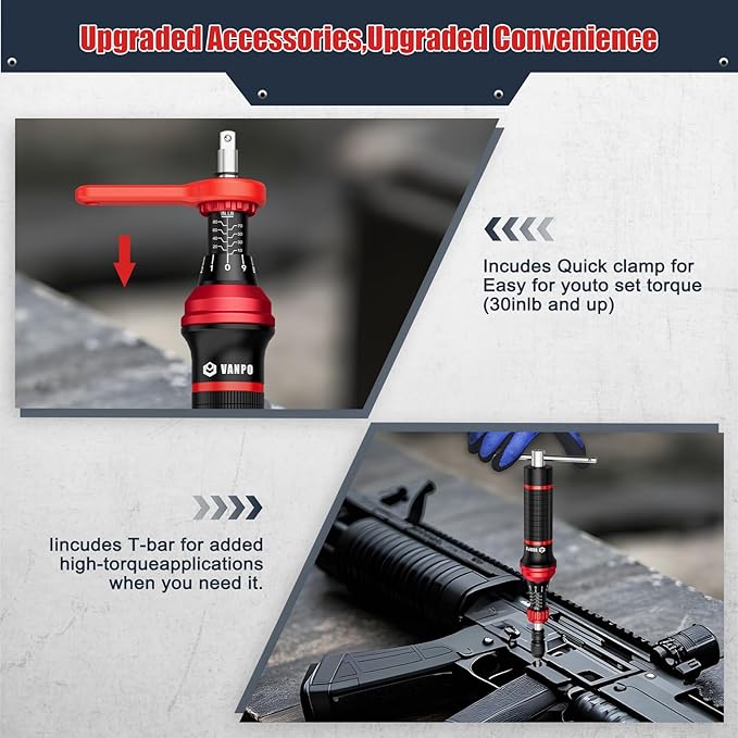 - Widely Used: The VANPO torque screwdriver (10-80 in-lb) can be used for various task repairs with precision. It is ideal for maintenance, tools, firearms, bike repairing, engine maintenance, woodworking installation, mounting and so on. The tool also works well for tightening screws on accessories, and its precise torque control is perfect for springs and small parts.