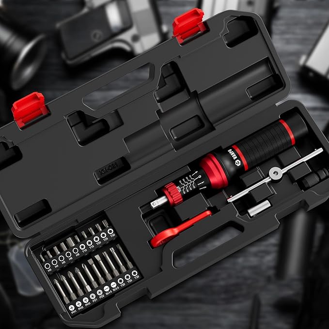 - Durability: The torque screwdriver set features S2 steel bits, known for exceptional wear resistance and toughness, ensuring long-lasting performance. Each bit is coated with anti-rust oil for corrosion protection. The lightweight aluminum body reduces hand fatigue, enhances portability, and resists oxidation for lasting reliability.
